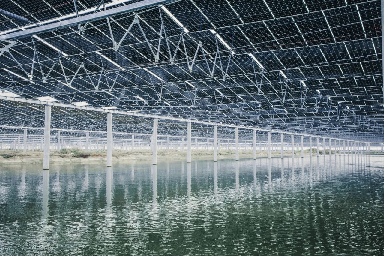 项目接纳高标准“渔光互补”模式,充分使用渔塘水域面积,将光伏发电和渔业养殖团结起来,形成“水上发电、水下养殖”的复合工业模式,实现土地资源的高效使用和生态开发,提升单位土地面积经济价值,打造清洁能源生长的“新样本”。该项目首批容量已于11月并网发电。
